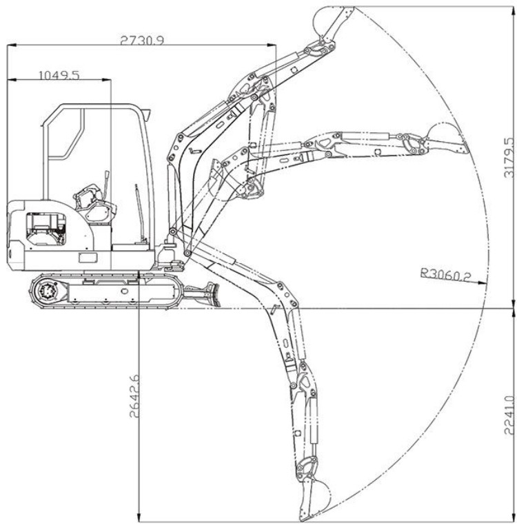 The mini excavator body is built for tight working spaces where larger machines cannot enter or turn easily. With an external size of 3700*1100/1400*2203 mm and a minimum turning radius of 1620 mm, this mini crawler excavator is well-suited to narrow job sites, so operators can work with less repositioning and better control. For buyers comparing excavator manufacturers and mini excavator manufacturers, this structure supports real jobsite efficiency because it reduces space constraints without sacrificing basic working reach.